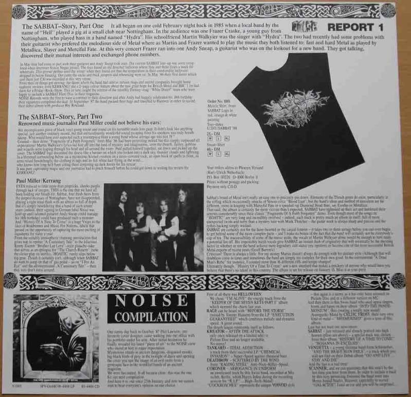 Description: other Noise International releases. lyrics printed on inside of gatefold sleeve. a 11" report sheet is added to