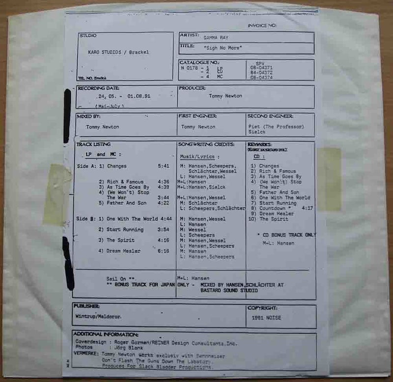 Description: white label test pressing with release info sheet taped to generic plain blank innersleeve. catalognumber