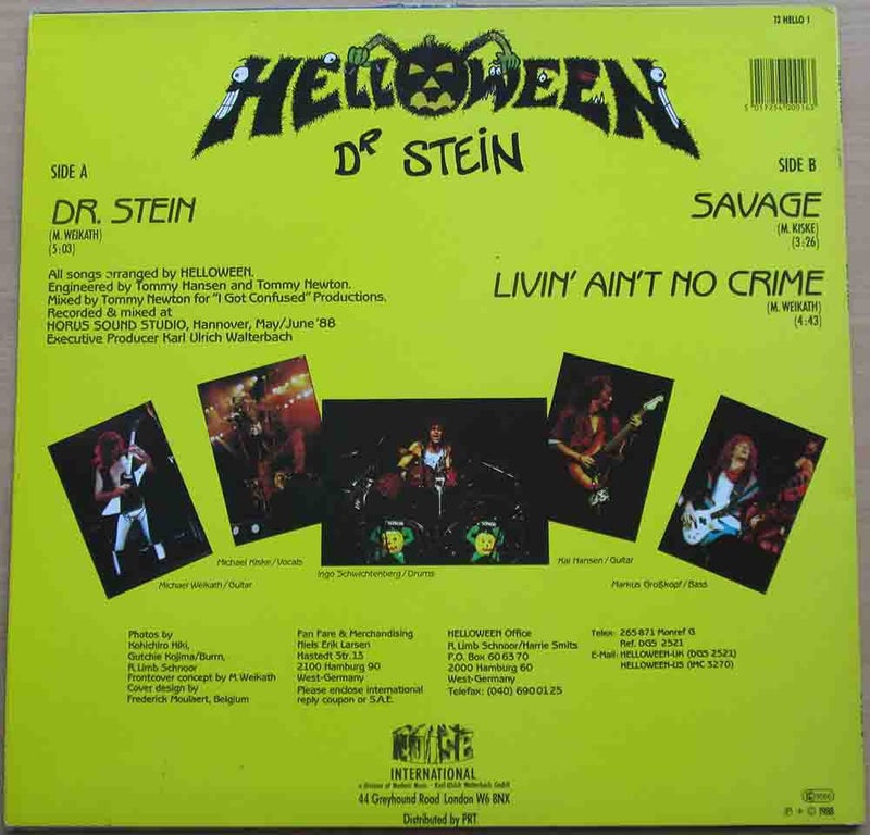 Description: 12" maxi single has bonus track Livin' Ain't No Crime. innersleeve with lyrics, other Helloween releases