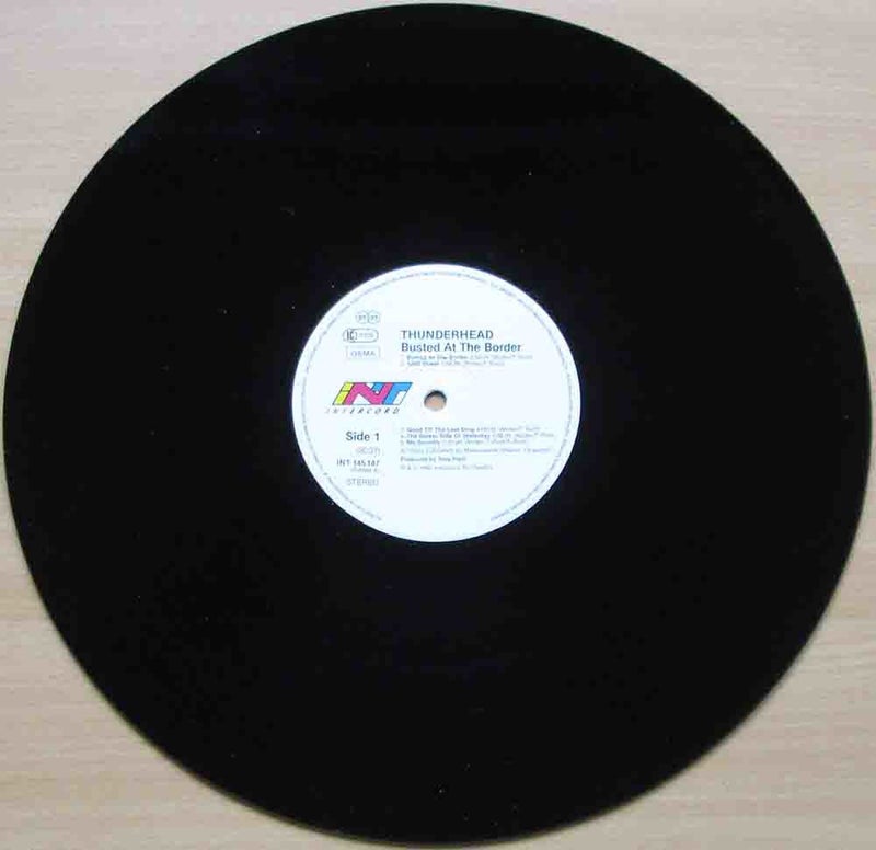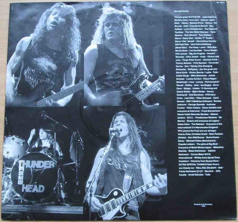 Description: innersleeve with lyrics and special thanks. Thunderhead logo has red lining.