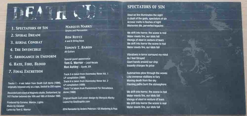Final Excretion is misspelled as Final Excertion in liner notes on lyric sheet and in CD booklet.