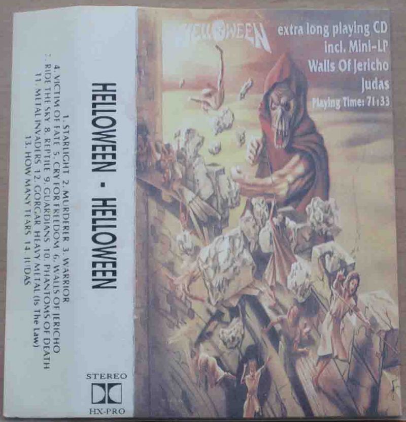 Description: sleeve is a direct copy of CD with altered dimensions for MC. title on spine of sleeve is Helloween. on flap