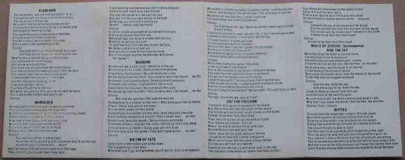 Tracklist: A1. Starlight A2. Murderer A3. Warrior A4. Victim Of Fate A5. Cry For Freedom A6. Walls Of Jericho A7. Ride The Sky A8. Reptile