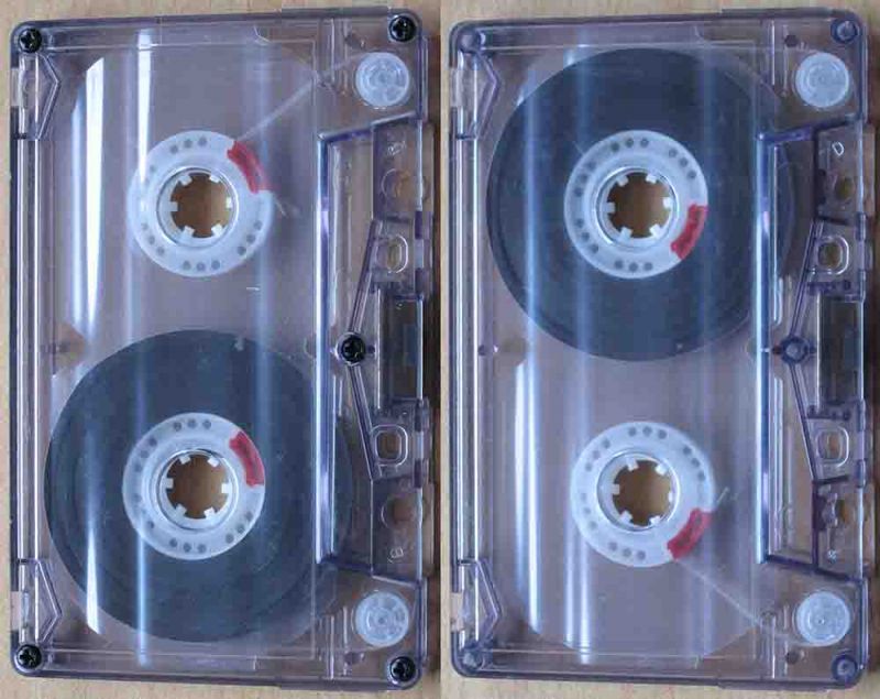 Description: cassette is a generic blank tape, made of clear plastic with a light grey coating on the inside. picture on