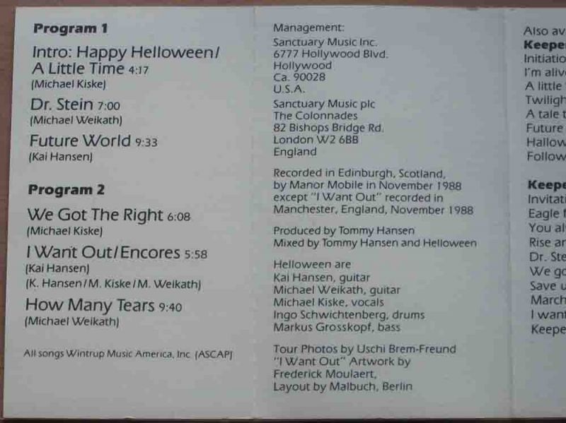 Tracklist: B1. We Got The Right B2. I Want Out / Encores B3. How Many Tears