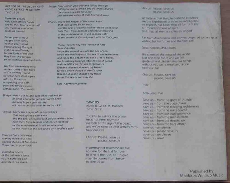 Tracklist: B1. March Of Time B2. I Want Out B3. Keeper Of The Seven Keys B4. Save Us