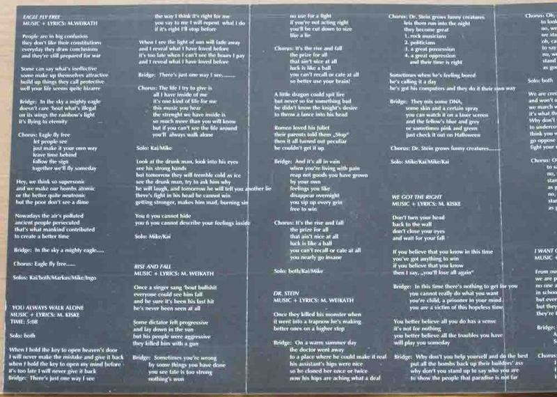 Description: Time, Keeper Of The Seven Keys and Save Us are not printed in lyrics section. Markus Großkopf is