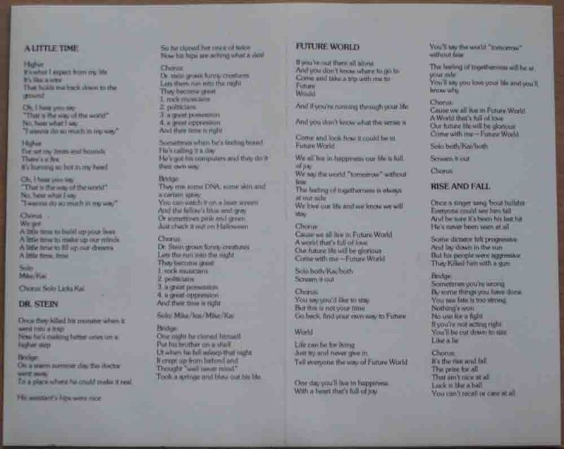 Tracklist: A1. A Little Time A2. Dr. Stein A3. Future World A4. Rise And Fall