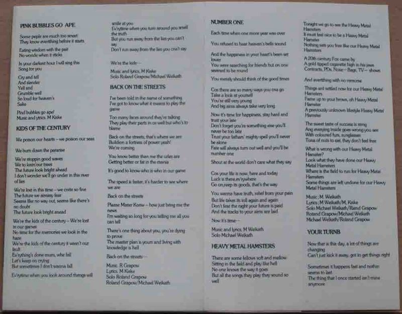 Tracklist: A1. Pink Bubbles Go Ape A2. Kids Of The Century A3. Back On The Streets A4. Number One A5. Heavy Metal Hamsters A6. Your Turn