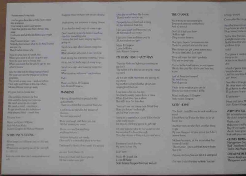 Tracklist: B1. Someone's Crying B2. Mankind B3. I'm Doin' Fine, Crazy Man B4. The Chance B5. Goin' Home