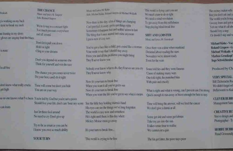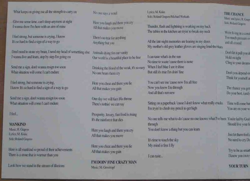 Tracklist: B1. Mankind B2. I'm Doin' Fine, Crazy Man B3. The Chance B4. Your Turn B5. Shit And Lobster