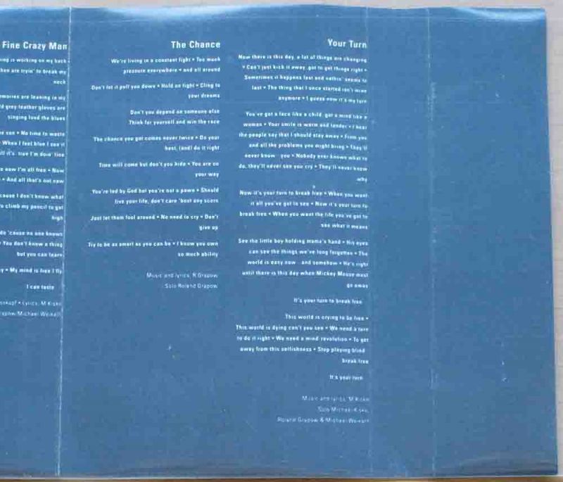 Tracklist: B1. Someone's Crying B2. Mankind B3. I'm Doin' Fine, Crazy Man B4. The Chance B5. Your Turn